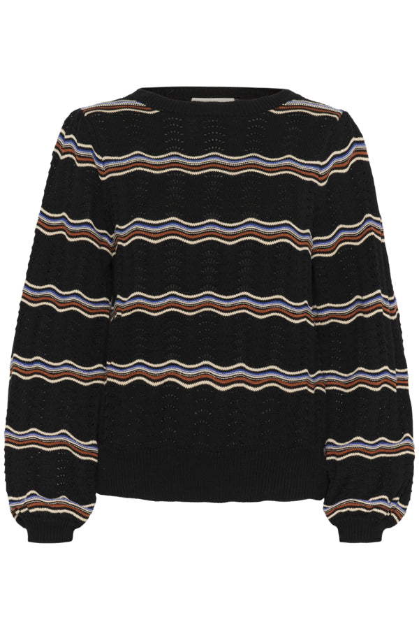CHANDAIL TRICOT CREAM "WAVY" BLACK STRIPES